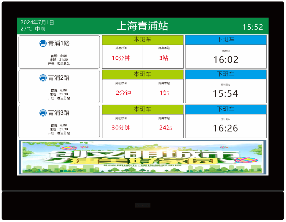 12.5寸立杆太阳能国产电子站牌由上海生产,主要由低功耗全贴合12.5寸液晶屏、多媒体安卓主板、4G物联网模块、光线感应或人脸识别模块、温控系统、灯光控制系统、定制外壳、太阳能供电系统以及铁磷酸锂蓄电池等组成,采用4G无线网络接入,支持移动、电信、联通三大运营商,同时也支持广电4G。